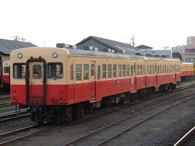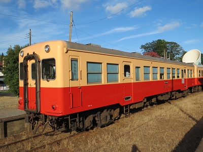 | 休日は観光客輸送のためこの上総中野までくる列車が比較的あるが、平日は1つ手前の養老渓谷止まりの列車が 多く、上総中野までくる列車の本数は極端に少ない。あと1区間なのだからここまでくればと思うのは、鉄道ファンの勝手な 思いで、実際はこの区間を乗る人はほとんど皆無なのだろう。 観光列車として頑張っているいすみ鉄道と手を組んでなんとか活性化して欲しいものである。 | |