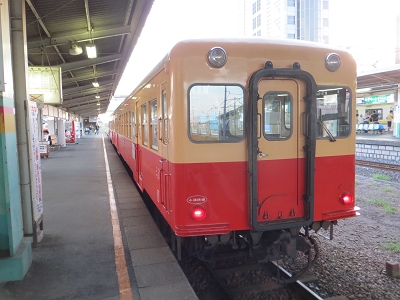 | 国吉駅に到着です。 | 田舎駅にこのキハ52がよく似あいます。 |