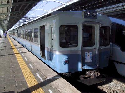 さて日曜早朝の田園都市線下りは、10両編成が気の毒くらいにガラガラ。乗り換えた江ノ島線は4両編成だったが、こちらも結構すいている。やっぱり日曜くらいは皆、ゆっくり寝ていたいんだよね。さて、藤沢に着き、みどりの窓口で、お目当ての伊豆東海岸きっぷを買っている間に、東海道線下り熱海行きは行ってしまう。そのあと、比較的すぐに電車がくるようだが、小田原止まり。なんかついてないなあ。でも、とりあえず、来た電車に乗ろうって思って、電車の入ってくる方向を眺めていたら、なんと185系。やったー特急開放車じゃん。(藤沢7時5分発。(東京6時18分発))