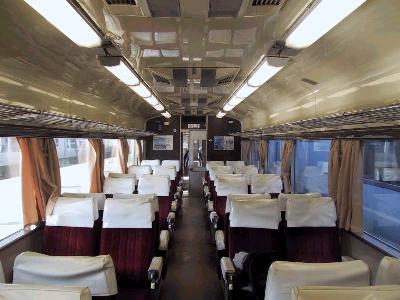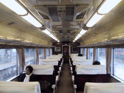 | αリゾート21 ロイヤルボックス | 最後は100系(185)の車内 独立シートにカーテンそして蛍光灯カバーと、もうほとんど特急並の設備 |