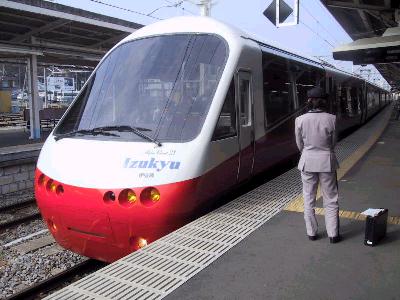 東京発7時24分発伊東行きは有名だから知っていたけど、これは、予想していなかっただけに、喜びも2重。さっそく、乗り込み、海側サイドの窓側に陣取る。まあ、乗ってみれば、中京圏や関西圏では料金不要が当たり前の転換クロスシートだが、東京ではこんなシートにだって特急料金払わないと乗せてもらえないんだよね。そう思って改めてありがたみをかみしめる。かくして40分の踊り子気分が終わり、定刻小田原へ到着。この185系は折り返し湘南ライナーになる。なるほど、その回送を旅客扱いしたわけか。小田原で、少し時間があったので、朝食に小鯵寿司を調達しておく。でもさ、駅弁って高いよね。こんなんでも900円もするんだよね。小田原からは後からくるいつも通りの113系(笑)。これが普通なんだよね。しかし、天下の東海道本線の東京口なのに主力はまだまだ113系。横須賀・総武快速線はE217系になったし、宇都宮・高崎線にもE231系が入って、115系は淘汰されつつあるのに、東海道線には未だに、そんな話がないのはJR東海との兼ね合いなのか。さて、熱海につくと、すでに、1番線に伊東線が入線している、伊豆急2100系、通称リゾート2 1。編成は第4編成のリゾート21EXと呼ばれるもの。海側に面した3人掛の方に腰を下ろす。伊東まではJR管内なのだが、リゾート21に乗ってるとなんかもう伊豆急線に入ってるような錯覚をする。おまけに、車掌が女性だったので、余計にそう感じるのかもしれない。リゾート21はご存知、伊豆急の看板列車で、普通列車でありながら、前と後は階段状の展望席、中間部分の海側は窓側に向いてる座席配置と非常に特色のあるものになっており、登場当時は鉄道ファンならずとも多いに話題になった。この人気は今でも衰えていないどころか、その後のジョイフルトレインにも影響を与えた名車である。この名車で景色を見ながら、小田原で調達した小鯵寿司を頂く。本来なら青い空、青い海なんだろうけど、残念ながら、天気の回復は遅く、外はまだ低い雲が立ち込めている。そのうち回復してくるかと思っていたが、伊豆に入っていくにつれて、霧もでてきた。列車の方はほどよく混んで、熱海を出発。しばらくは東海道線に沿って進み、来宮に到着。東海道線の線路が脇にあるにもかかわらず来宮は伊東線にしかない駅になる。伊豆多賀、網代、宇佐美と進み、伊東では3分の1程度が降りる。 ここから、伊豆急線に入り、運転士と車掌が交代する。列車はこのまま霧の中を、南伊東、川奈、城ヶ崎海岸を経て、伊豆高原へ。とりあえず、時間が早いのと車庫があるので、下車してみる。