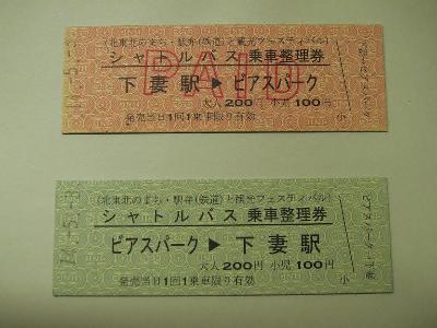 | これが、ビアスパークまでのシャトルバスのD型硬券 地紋はなぜか国鉄である。 |