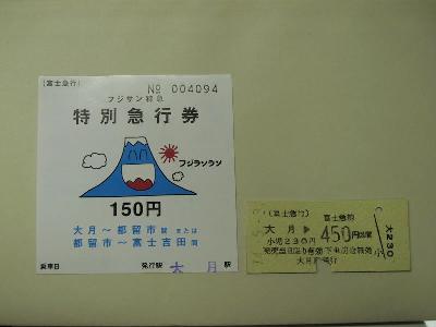富士急の富士山特急の特急券と硬券乗車券 |