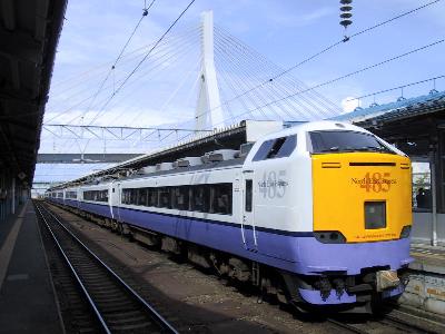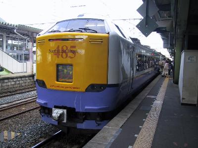 盛岡に到着すると、皆、はつかり1号に乗り換えるためか、一斉に走り出す。元々、やまびこ271号が臨時で接続時間が少ないというのもあるのだが、そのためはつかり1号は、このやまびこ271号の運転日は発車時間が通常より5分あとになる。皆、駆け足で新幹線の改札を抜けるが、この自動改札口がまたなんと3台も、券詰まりになってしまっている。なんだよ!ということで、有人改札を通り抜ける。自分ははつかり1号の指定席を押さえてあるので、比較的ゆっくりとホームに向かい、ホームに下りたら、下りたで、ゆっくり485系3000番代のはつかりの写真なんかものんびり撮影して、自分の座席に向かった。しかし、この列車8両編成だが、すさまじい混み方だ。2両の自由席は通勤電車並。あふれた客は指定席車両の通路まで埋め尽くすようなすさまじさである。3連休初日だもんな。しかし、こんなに混むなら、すぐそのあとに続行で臨時でも出せばいいのに。どうせ、青森のノーマルな485とか、583とか余ってるんでしょう。ってその方がファンも喜ぶだろうしさ。(笑)。おかげで、座っていても、なんか落ち着かない。ま、仕方ないか。ほとんどの客が青森・函館まで