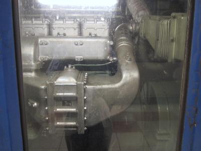 | カニ24。側板はぼろぼろ。ちょっと痛々しい。 | しかし、窓からのぞく、機械には力強さを感じる。 これで、今夜一晩の電源をまかなってもらうのだ。 |