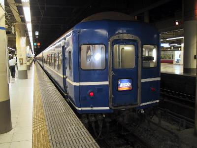 さて、うろうろしているうちに、そろそろあけぼのの入線時間。尾久から推進運転で上野に入線してくる。あけぼのは東京から対秋田を主眼においた青森行の寝台特急である。経路は、元々は奥羽本線経由だったが、山形新幹線開業の絡みで陸羽東線経由を経て、現在は上越・羽越線経由になっている。ブルトレ衰退と言われて久しいが、それでも、やはり、それなり人気はあり、ヘッドマーク付機関車の前で、旅行者が思い思いに、シャッターを切る。それに、ブルートレインは旅情をかきたてるにはもってこいのアイテムだ。しかし、1970年代にデビューした車体には相当疲れがでており、特に、電源車であるカニの外板はベコベコ。見ているだけでも痛々しい。塗装を上塗りで補修するのではなく、はやり一度、剥がして、再度塗りなおして欲しいものである。痩せても枯れても「特急」なのだから。そして、今回、乗る車輌は今年の頭から登場した、JR東日本が出した、ブルートレイン活性化の秘策。ゴロンとシートである。普通の開放式B寝台を利用できるが、シーツ、枕、毛布、スリッパ、浴衣等の寝台グッズは一切なし。その代わり、寝台料金なしの指定席特急券だけで、乗車できる。ブル