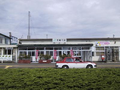 さて、大湊についたら、ちょっとやることが...まず、16日に行く予定である、函館までの切符を買う。函館までの切符なら、なにも、わざわざ、こんなとこで買わなくても前もって東京で買っておけばいいのだが、青森ー函館が2日間乗り放題でしかも、青函トンネルの見学もできるドラえもん海底きっぷなるフリーきっぷが5500円で盛岡支社管内限定で発売しているのである。ところが、駅員さん、全然分かっていない。まず、ドラえもん海底きっぷが出てくるまでに10分。そして、さらに、竜飛海底駅のゾーン539の切符がでてくるまでさらに10分。俺、なんか特殊なこと頼んでるのかな???しかも、後ろで待っていたじーさんが、やたらイラついて、ため息とかついてるし、俺、悪くないよ...。しかし3連休なので、竜飛海底駅のゾーン539は満席じゃないかとちょっと不安があったが、なんとか、切符を手に入って安心。次のきらきらみちのくまでは50分あまり。大湊の駅前をブラブラ。といっても、ブラブラするほどの街でもない。とりあえず、駅前にリンゴ屋さんがあったので、そこから、実家へ一箱送る。天気は晴れてるとも曇ってるとも雨とも言えない複雑な天気。<何言