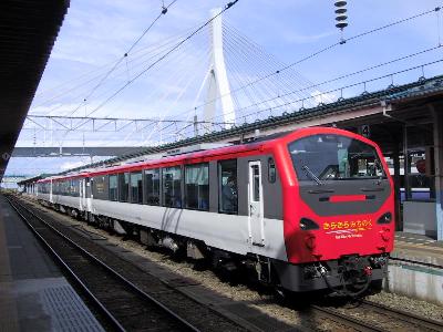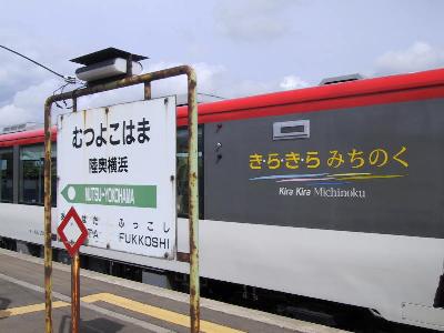 そのあとは適当に時間を潰し、ようやく、きらきらみちのくの改札が始まる。心外だったのが、自分はきらきらみちのくの指定券を2週間程前に海浜幕張の駅で買ったのだが、通路側だったので、「窓側にして下さい」と頼んだら、「これが、最後の1枚」と言われていたのに、当日、大湊ではまだかなり余裕があるとのこと。いったいどういうこと???東京地区では発売しないで、押さえてある席があるってことなのかな?腑に落ちないまま、とりあえず、ホームへ。自分は1号車のB席で、窓側には別の誰かがくるはずなのだが、これも来ない。どうなってるの???ま、おかげで、のんびり2席仕切ってこれたからいいんだけど。