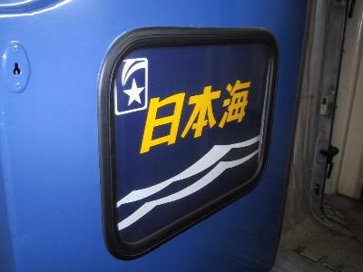 日本海のテールマーク 車内の連結部で撮影 |