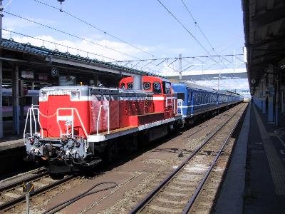 | 青森に到着した日本海3号 | まず、すぐに機関車だけが、切り離される。 |