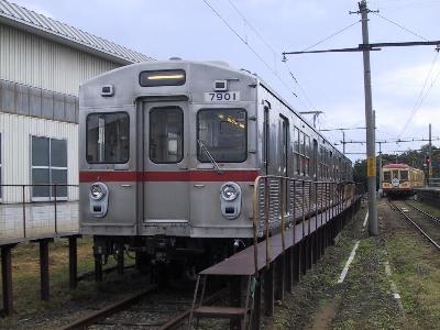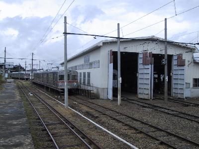 | 七百駅 | 七百検車区 7700系と車庫の中には7200系も見えます。 |