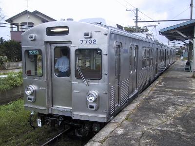 | ありがとう旧型電車のヘッドマーク付 七百駅 | 7700系 こちらは赤帯がついたままです。 |