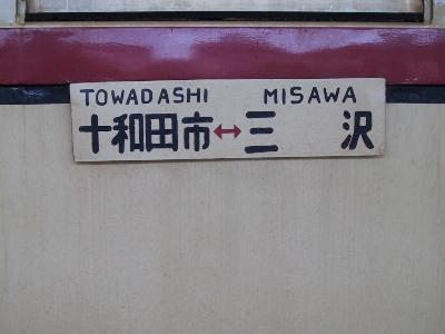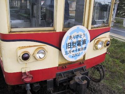 さて、次にやってきた列車はさよなら旧型電車のヘッドマーク付の車輌。その電車に揺られながら、終点十和田市まで行く。