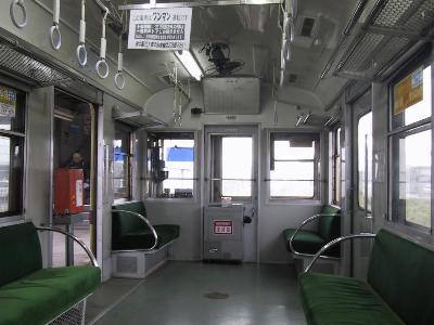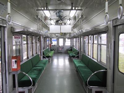 | 車内の様子 整理券発行機と運賃箱を除けば 東急時代のまんまです。 グリーンのモケットもそのままです。 | |
