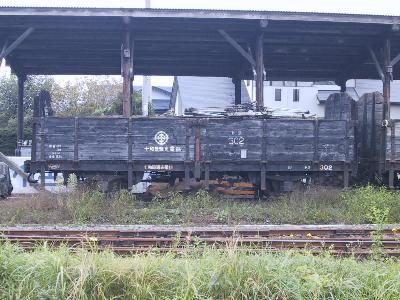 | 今時珍しくなった木造貨車トラ302 荷台にはパンタグラフが積まれています。 |