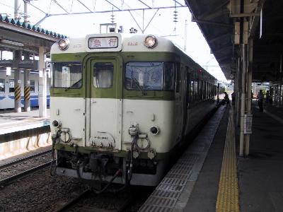 しかし、このまま東京に戻るっていうのもあまりにも能がない。とりあえず、大宮で降りてみっか。なにげなくおりた大宮、新特急あかぎに乗るべく、高崎線ホームへ向かう。そして、懐かしいものを発見。なんと「新幹線リレー号」の案内。若い人のために念のため解説だが、昭和57年に東北・上越新幹線が開通したとき、とりあえず、始発が大宮の暫定開業だったので、上野−大宮間は185系200番代を使ったリレー号で連絡をしていたのである。しかし、こんなものがまだ残っているとは...。そして、次に乗るあかぎはそのリレー号に使っていた車輌である。車内は転換クロスシートからリクライニングシートに変わり、塗装も、緑の帯から、赤と黄色のブロックパターンに一新されだいぶ装いも変わっている。そのあかぎで、桶川まで行く。って10分足らずなんだが...。桶川では気せずして、東京地区では売っていないIOカードをGET。超ラッキー。そして折り返しは、リゾート水上。リゾートなんて頭につくとこをみると、251系とか255系とか使っているのかと思い気や、やってきた列車はさっきと同じ185系。しかもヘッドマークも「水上」でリゾートの文字は見当たらない