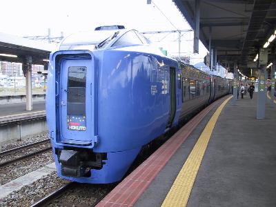 | 183系気動車 北斗 コンサドーレ塗装が入線してました。 | こちらは281系 スーパー北斗 これらの列車群からも北海道にきたと実感します。 |