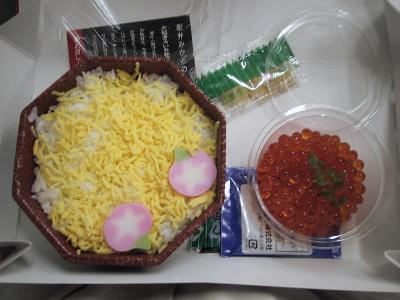 | 函館駅限定のいくら弁当 | 中はこんな感じ。いくらが別容器に入っています。 |
