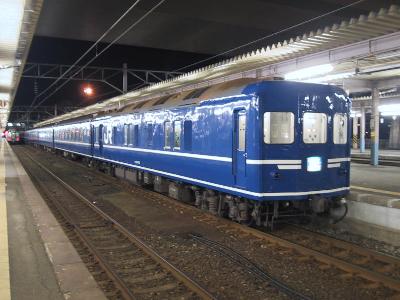 | はくつる入線です。 | 夜、ホームの光に照らされるブルートレイン、美しすぎます。 |