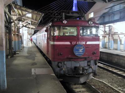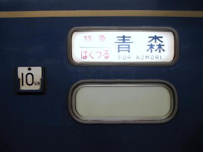 さて、無事青森に到着して、またまたお土産あさりと、前回、仕切りそこなった、青森を走る列車がデザインされたオレンジカード10枚セットを購入。583のはつかり、はくつる、485のはつかり、客車のはくつる、あけぼのなどがセットにはいっている。どうせ、使うんだからと1万円気前よく払ってはみたが、いざとなると、もったいなくて、使わないんだろうな...(笑)。これで、思い残すこともなくなって、はくつるの出るホームへ。まだ、時間が早く、列車入線前。ベンチに座って、しばし、ぼーっと待つ。徐々に上野に向かう人々が集まって、青森駅のホームは今日、最後の賑わいを見せる。こうした風景も、あと2ヶ月半。はくつるがなくなると、もうこうした夜の賑わいはなくなるのであろう。最後のはくつるはゴロンとシートの下席が取れている。明日は平日というのに、昨晩と違いゴロンとシートは満席。自分のボックスにも、すでに、他の3名が席についていた。発車して、検札、そして、洗面を済ませたら、寝る体制に入る、今夜最後なので、しばし、カーテンの隙間から外をぼんやり眺める。どうやら、雨が降ってきたようで、路面が濡れている。八戸、そして、盛岡付近ま