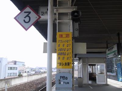 | ガラス越しで見難いのですが、駅舎内に赤箱があります。 | タブレット信号。 |