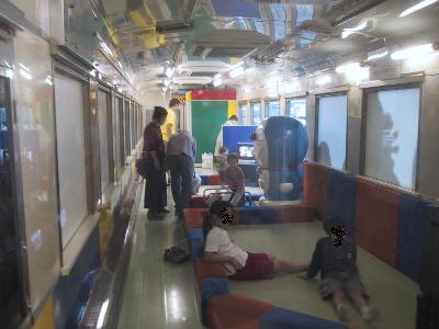 夕方の列車のため、木古内のほか、行きには止まらなかった上磯などにも止まっていく。そのかわり、青函トンネル内は、海底駅に止まらず。一気に通過。もっともこんな時間から見学なんてできるわけもないから当然だが・・・。53.8kmを30分足らずで抜けてしまう。妻面の点滅する電光掲示を眺めているせいか、意外に早い印象だ。その間、函館で仕入れた、駅弁を食する。最終日、最後の晩餐ということで、函館駅限定1300円もするいくら飯を奮発。この駅弁、なんと、御飯といくらが別になっていて、自分で、御飯の上にいくらをかけて食べるというもの。またそのいくらの数がはんぱじゃない。真っ赤に敷きつめらてた、いくら御飯を堪能しながら、青函トンネルの旅を楽しむ。その後は、トイレに行きがてら、車内探検。カーペットシートはかなり人気らしく、いくつかのグループが車座に陣取って、ほとんど宴会状態で盛り上がっており、ドラえもんカーでは、子供が夢中で遊んでいる。こういう、列車でしか、できない、空間、これから、もっと、増えていけば、鉄道の活性化にもつながると思うのだが...