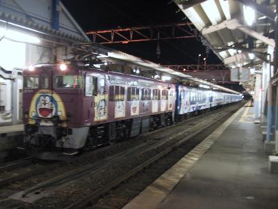 | 海峡5号 牽引機はドラ機のED79 3号機 青森駅 | 機関車側面にもドラえもん |