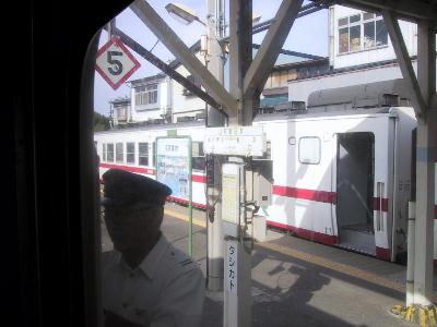 | 運転台。ちょっと見難いですが、左側にタブレットが掛かっています。 | 陸奥湊に到着。タブレット交換です。 |