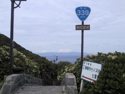 | このような石畳の階段が続いています。 | ちょうど中間地点になります。国道339号線の標識もあります。 ここは、まぎれもなく「国道」です。 |