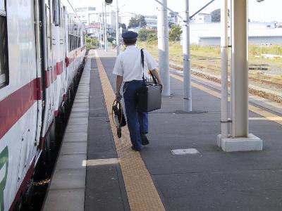 | 運転士がタブレットを持って、運転室へ | 八戸に向けて出発! 鮫駅 |