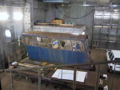 | 青函記念館内の展示 | 冬季はこの作業用の青いケーブルカーに取り替えられます。 もぐら同様愛称がついており、なんと「北斗星」(笑) |