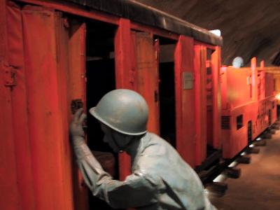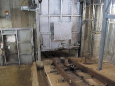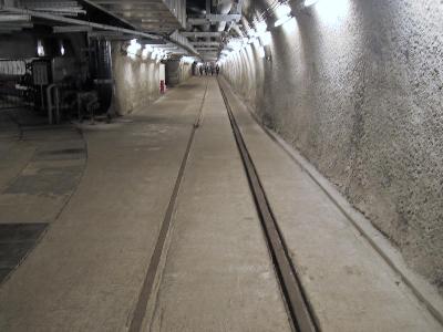 | 下に下りてきました。海面下140Mです。 | 工事中はこのようにトロッコで作業をしていました。 |