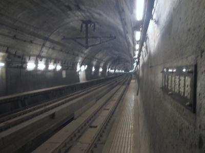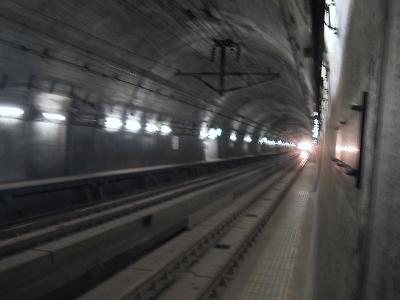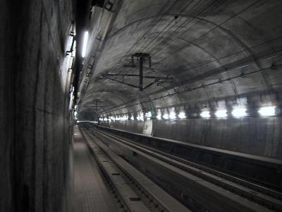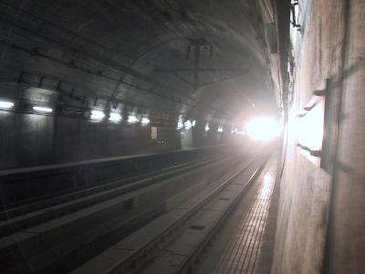 気が付けば、3時間あまりの見学時間もあっと言う間にすぎ、海峡7号に乗るためにホームへ。改めて、本坑を眺めてみる。本当に、よくぞ掘ったものだと関心する。線路は、現在、1067mmの在来線用狭軌になっているが、新幹線用1435mmの線路も設置できるスペースが用意されている。いずれ、ここに東京からの新幹線が通る日がくるのだろうか?。しばらくすると、トンネルの向こうから、轟音と共に、ヘッドライトが見えてきた。