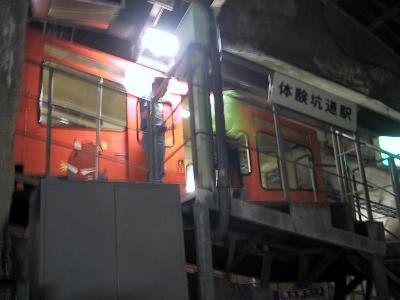 | 客車もこんな感じです。 | 海底駅専用車 ここから乗り込みます。 |