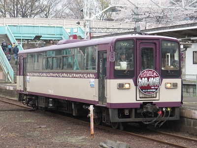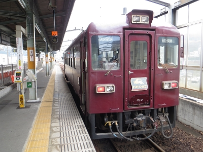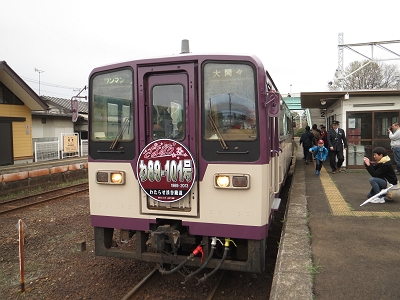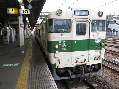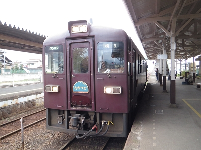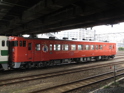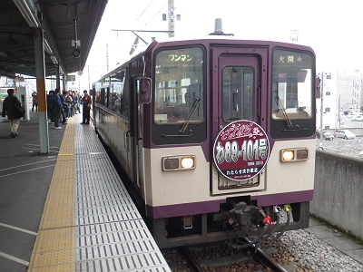 | 側面の大黒天マーク | 2014年春より新型車両蓄電池駆動電車EVーE301系が導入 される予定になっており、キハ40の活躍もあと1年あまりに なりそうです。 |
