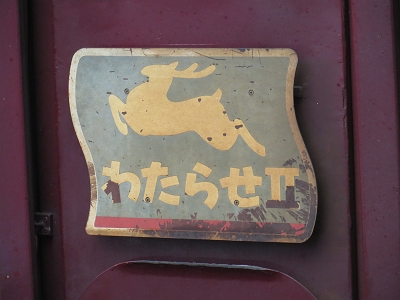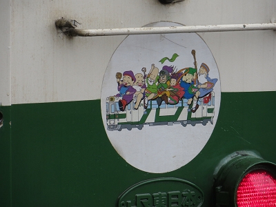 | 側面の様子 手前の部分に日光の駅舎のイラストが描かれています。 トイレに改造されたところです。 |