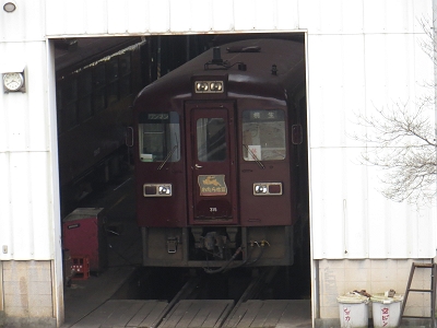 | 車両検修庫 | 庫には、わ89−315 わたらせVがいます。 よく見ると休車の表示があります。 |