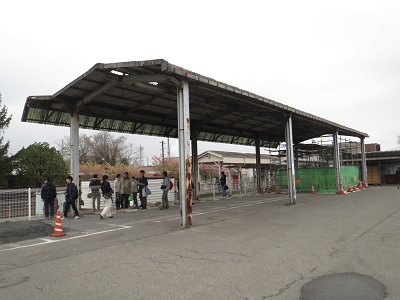 | このままスクラップかと思われたのですが、 横の駐車場にこのような線路が・・・ もしかしてと思い係員に尋ねると・・・ |