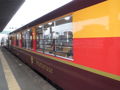 大間々からの帰りは、トロッコわっしー号でした。大間々〜桐生間は全車自由席になるようで、あいてる席に座ることができます。もっとも、トロッコ車両ではない先頭車のWKT−501は元々自由席車ですけど。