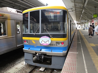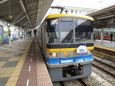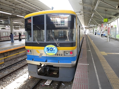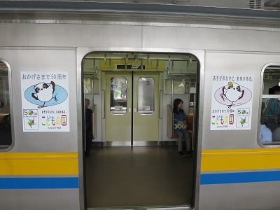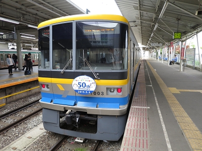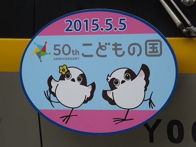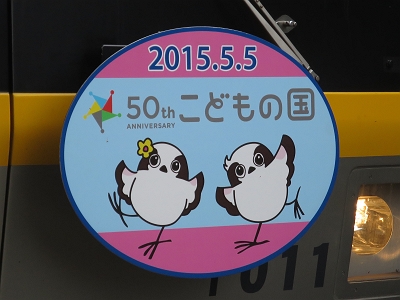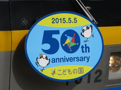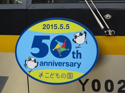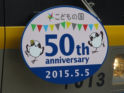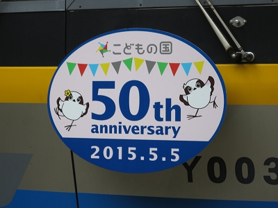 2015年5月5日でこどもの国が開園50周年を迎え、それに伴い、こどもの国線の車両3編成に記念のヘッドマークが付きました。