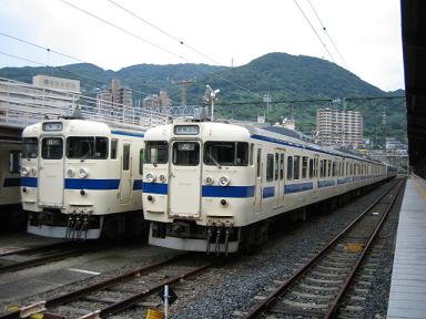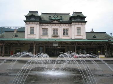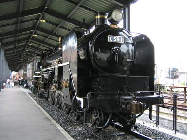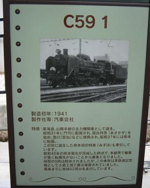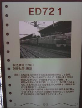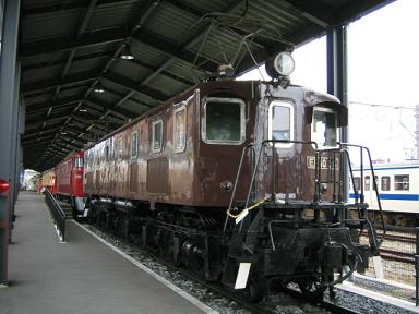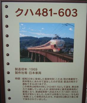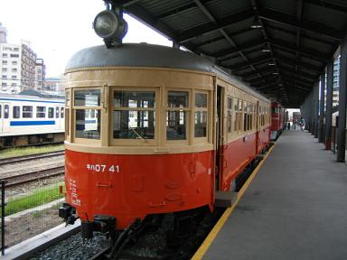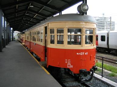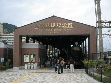 駅から歩いて数分。赤レンガの旧九州鉄道本社ビルが鉄道記念館として再生された。入場料は300円。入口には早速、キューロクことSLの9600形が出迎えてくれる。他に展示車両はC59、EF10、ED72、クハ481ボンネット、クハ581、なかでも一番の注目はキハ07であろう。戦前製で前面の流線型が非常に美しい気動車である。長年豊後森に保存されていたものだ。原型をとどめているキハ07系は、この1台ということで非常に貴重な車両である。また車内にも入れるが、土足厳禁。スリッパに履き替える必要がある。床は当然のごとく木で、座席も木製のボックスシートにブルーのモケットで本当に昔の汽車という感じがする。また、車内、車外ともよく整備しており、このキハ07に限らず、女性係員がこまめに、拭き掃除を行なっていて、どの車両も鏡のように光り輝いているのは好感が持てる。また、機関車以外の車輌の内部に立ち入れるのも良い。クハ481ボンネットはごく一部(急行能登)でまだ現役で活躍しているものもあるが、この車輌は元クロ481で側面窓が小さいタイプで貴重なものだ。クハネ581は普通列車用に改造された715系をそのまま色だけ元 に戻したもので、正式にはクハネ581とは違うが、581系の変遷が辿れてこれもまた良い。それにしても、最近、ようやく、車輌保存という文化が各地で芽生えてきたようで、全く喜ばしい限りだ。