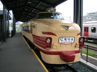| クハネ581 実は後年に普通列車として715系に改造されたものを色だけ581系に塗りなおしたものです。 | |