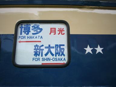 大阪から新大阪まで1つ戻り、ムーンライト九州の発着する17番ホームへといく。すでに、多くの乗客が集まっているが、全車指定のため、長い列を作ることもなく、また夜行自由席特有の殺気だった雰囲気もなく、列車の入線を待つ。まもなくするとEF65に牽引されたピンクと白のツートンカラーの14系が8両編成で入線。今時、14系客車に乗るというのも貴重になってきた。車内は元シュプールに使われたということで、スキー置き場や、大きな荷物置き場もあり、荷物の大きい客には便利である。新大阪を出ると大阪、三宮、神戸、明石、姫路、岡山に停車。その後は翌朝、厚狭まで停車駅はない。大阪でほぼ座席は埋まる、車掌が繰り返し、全社指定席で、指定券をお持ちでない場合は乗車できません。と案内するが、駅に停車する直前に案内してもあまり意味ないように思う。ちなみに、今日は満席とのこと。今朝は4時起きをしているので、明石につく頃にはかなり眠くなり、ほとんど記憶がなくなる。