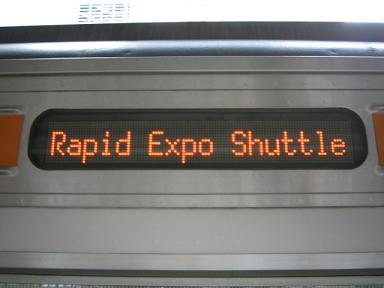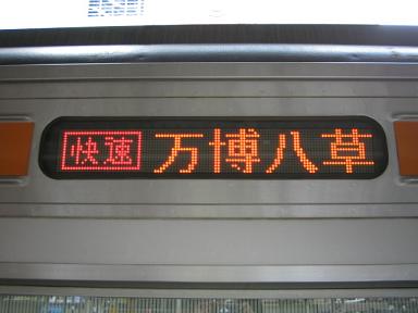 | 快速エキスポシャトルの黄色の方向幕 | 側面方向幕 |