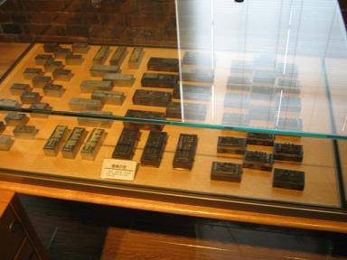 | タブレットキャッチャーや転轍機の展示 | 硬券の金型 |