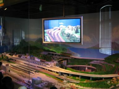 さて、ここからは、その万博に伴って開通したリニモに乗る。混雑緩和のため、広い乗換口には臨時の乗車券売場が設置されている。とりあえず、エスカレーターをあがり、本来の券売機で乗車券を買い求めようと思ったが、トランパスが使えるとのことなので、リニモがデザインされた1000円でトランパスを買った。トランパスを改札に通し、さらにエスカレーターをあがり、ホームへ。ちょうど列車が発車する時だったが、満員の上、係員が次の電車をご利用下さいとの案内しているので、それに従う。リニモのホームは東京メトロ南北線のように全面ガラス張りのホームドアが設置されており、写真撮影には向かないので、ホーム先端から走り去る列車をガラス越しに撮影する。1本回送列車をやり過ごしたあとの列車に乗り込む。万博期間中だと3両編成はちょっと輸送力不足な感じがするが、万博が終わればこれでも、長すぎるくらいかもしれない。ボックスシートに座り、滑るように発車し、しきなり、急カーブ、急勾配だが、ぐんぐん加速する。このリニモ、HSST方式のリニアモーターカーで、走行中は軌道上から約6mm浮き上がっている。浮き上がっていると言っても6mmなので、 浮上感はほとんど感じられない。そして、6mmでも浮き上がって走るので、当然のことながら台車には車輪がない。(浮き上がらなかった場合の補助輪はあるらしいが。)車輪がないというのは、鉄道にとってというか、私にとっても、驚きというか、ある意味、衝撃的でもある。モノレール、新交通システム、リニア式地下鉄など、変り種の鉄道は多数存在するが、いずれも走行するための車輪はある。ところがリニモにはそれがないのだ。リニアモーターカーと聞くと時速500kmとかを想像するが、このリニモは低速型で最高速度は100kmである。