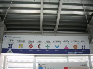 | 各駅ごとにシンボルマークがあります。 | リニモがやってきました。非常に静かで音もなくやってきます。 |