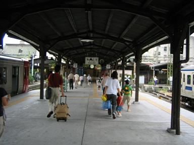 藤が丘からは先ほどリニモを乗るときにかったトランパスで地下鉄東山線に乗車。リニモは地下駅なのだが、地下鉄である東山線は地上駅になる。ここから名古屋までのんびりと戻ってくる。さて、名古屋での予定が終わり、再び、東海道線に乗り、さらに西へ向かう。313系の快速で大垣へ。さらにそこから米原行に乗り換えるが、相変わらず2両編成で満員状態。30分強立たされる。毎回思うが、本当にこの区間、なんとかならないものか。数年前に1時間ヘッドから30分ヘッドになったのは評価するが2両編成というのはいかにも短すぎる。本数を増やすなり、編成を長くするなり、もう少しなんとかして欲しい。米原からは接続があまりよくなく、20分程、時間がある。そういえば、米原ではいつも慌しく乗り換えてホームしか知らないので、今回は、1度駅を降りてみることにした。関西方面から北陸へは湖西線経由が主流になったとは言え、東海道新幹線、北陸本線と交わり、さらに近江鉄道というおまけもついてくるわけで鉄道の要所には変わりない。新幹線との乗換口にはそれなりのKIOSKが店を構えており、駅弁や土産物などを並べていて見るだけでも楽しめる。