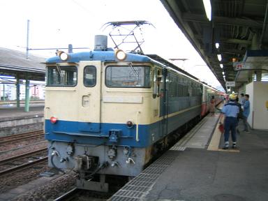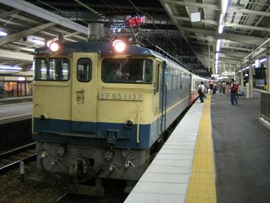 | 翌朝 下関駅 機関車付け替えです。 EF65はここで役割を終えます。 |