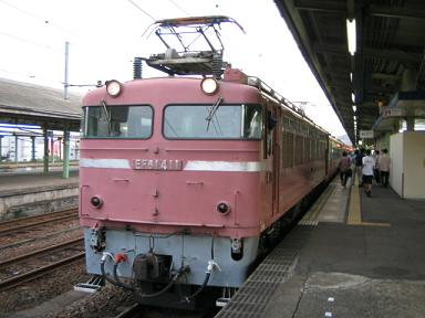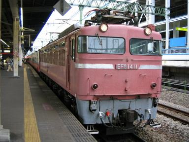 | ここからは交直流形のEF81が牽引します。 | 終点博多に到着です。 |